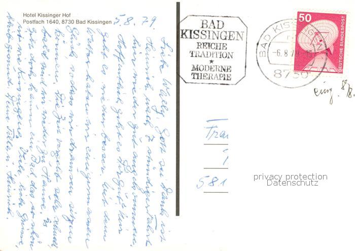 73614861 alte Postkarte Bad Kissingen Hotel Kissinger Hof postalisch gelaufen Erhaltung siehe scans [WerneD78] KatCode: 11110009672114