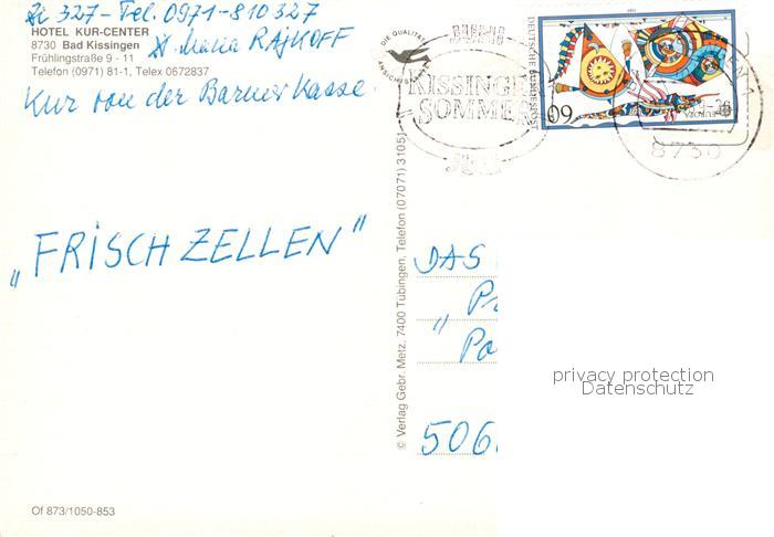73830020 alte Postkarte Bad Kissingen Hotel Kur Center Gastraeume Zimmer postalisch gelaufen Erhaltung siehe scans [WerneD78] KatCode: 11110009672114