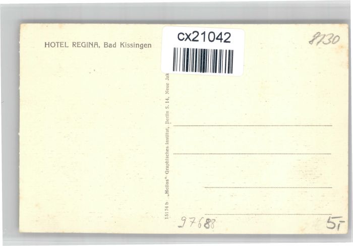 30739801 Bad Kissingen Hotel Regina postalisch nicht gelaufen KatCode: 11110009672114