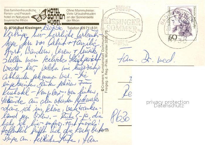 73841035 alte Postkarte Bad Kissingen Hotel Sonnenhuegel Fliegeraufnahme postalisch gelaufen Erhaltung siehe scans [WerneD78] KatCode: 11110009672114