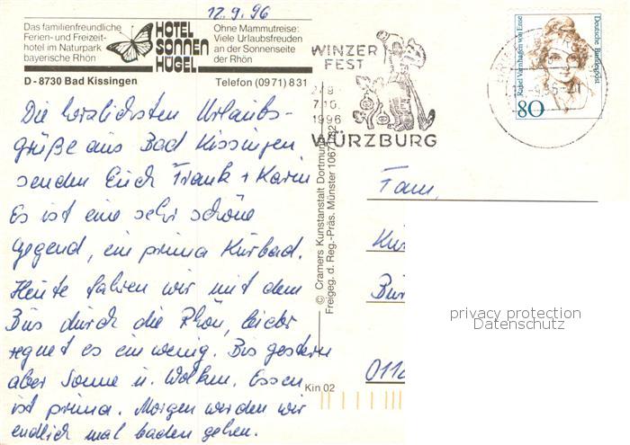 73785212 alte Postkarte Bad Kissingen Hotel Sonnenhuegel Fliegeraufnahme postalisch gelaufen Erhaltung siehe scans [WerneD78] KatCode: 11110009672114