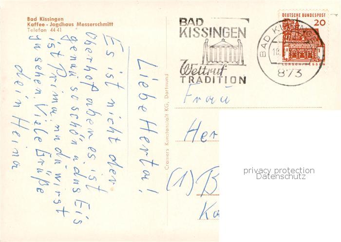 73841419 alte Postkarte Bad Kissingen Kaffee Jagdhaus Messerschmitt Freiterrasse postalisch gelaufen Erhaltung siehe scans [WerneD78] KatCode: 11110009672114