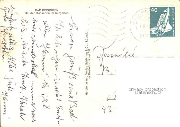 72196643 alte Postkarte Bad Kissingen Kaskaden im Kurgarten postalisch gelaufen Erhaltung siehe scans KatCode: 11110009672114