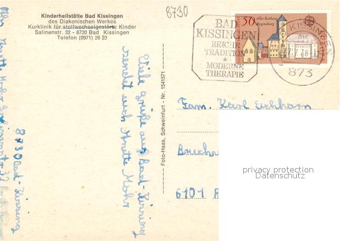 73118937 alte Postkarte Bad Kissingen Kinderheilstaette postalisch gelaufen Erhaltung siehe scans [LiesaD40] KatCode: 11110009672114