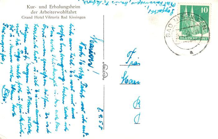 73899666 alte Postkarte Bad Kissingen Kur- und Erholungsheim der AWO Grand Hotel Viktoria postalisch gelaufen Erhaltung siehe scans [FriedD77] KatCode: 11110009672114
