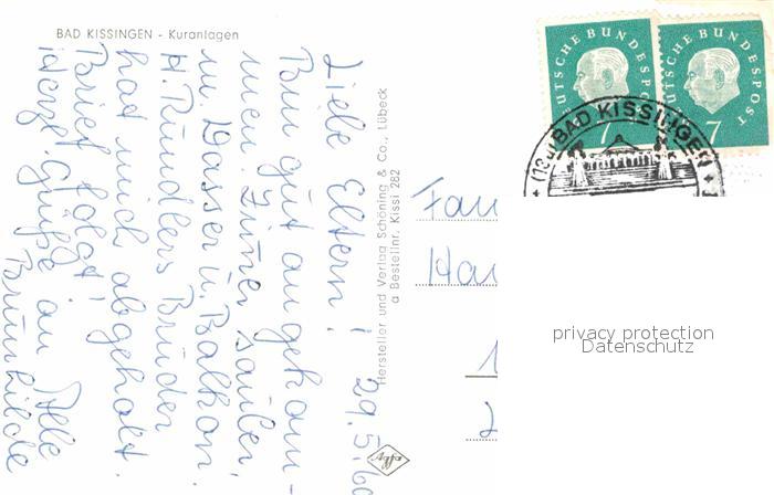 72840775 alte Postkarte Bad Kissingen Kuranlagen postalisch gelaufen Erhaltung siehe scans [FriedD77] KatCode: 11110009672114