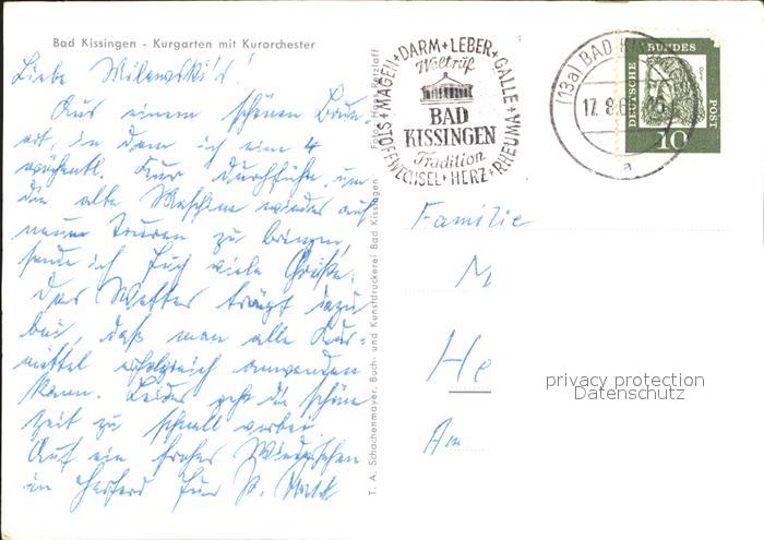 71942149 alte Postkarte Bad Kissingen Kurgarten mit Kurorchester postalisch gelaufen Erhaltung siehe scans KatCode: 11110009672114