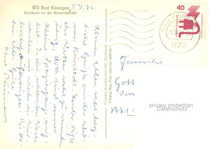 73703720 alte Postkarte Bad Kissingen Kurhaeuser an der Bismarckstrasse postalisch gelaufen Fliegeraufnahme Erhaltung siehe scans [FriedD77] KatCode: 11110009672114