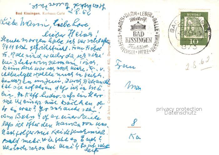 73147500 alte Postkarte Bad Kissingen Kurhaus Cafe postalisch gelaufen Erhaltung siehe scans [FriedD77] KatCode: 11110009672114