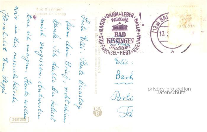 73734947 alte Postkarte Bad Kissingen Kurhaus Dr. Dengg postalisch gelaufen Erhaltung siehe scans [FriedD77] KatCode: 11110009672114