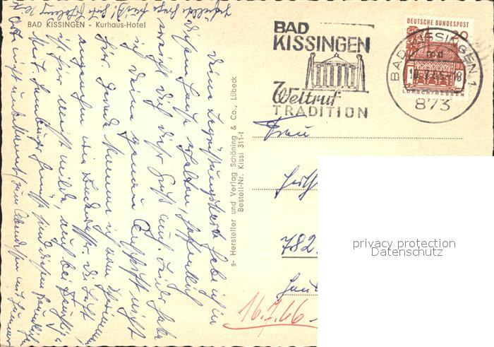 72064869 alte Postkarte Bad Kissingen Kurhaus Hotel postalisch gelaufen Erhaltung siehe scans KatCode: 11110009672114