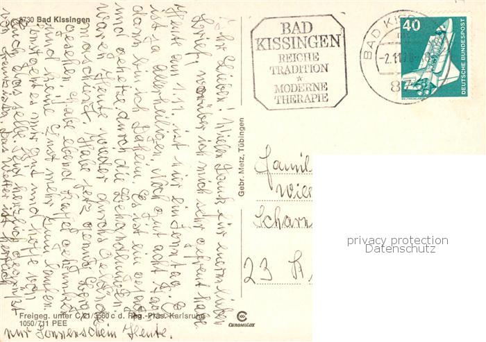 73760960 alte Postkarte Bad Kissingen Kurhaus Kuranlagen postalisch gelaufen Fliegeraufnahme Erhaltung siehe scans [FriedD77] KatCode: 11110009672114
