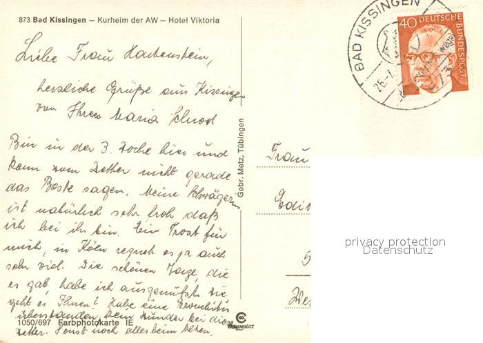 73719534 alte Postkarte Bad Kissingen Kurheim der AW Hotel Viktoria postalisch gelaufen Erhaltung siehe scans [FriedD77] KatCode: 11110009672114