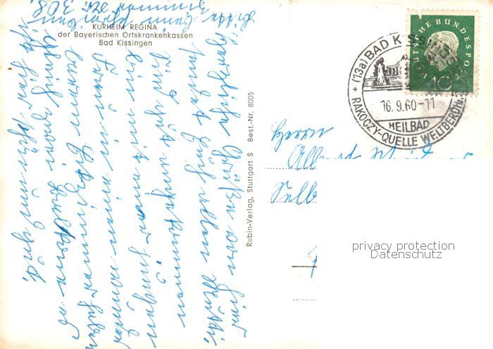73865944 alte Postkarte Bad Kissingen Kurheim Regina postalisch gelaufen Erhaltung siehe scans [FriedD77] KatCode: 11110009672114