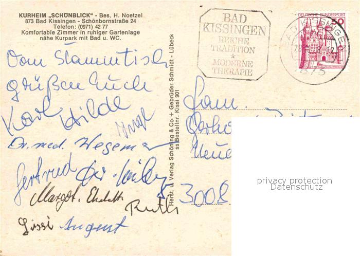 72793009 alte Postkarte Bad Kissingen Kurheim Schoenblick postalisch gelaufen Erhaltung siehe scans [NatalD47] KatCode: 11110009672114