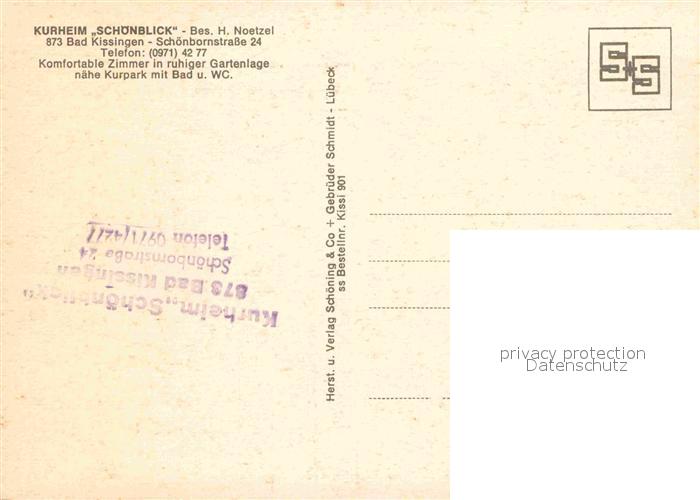 72803607 Bad Kissingen Kurheim Schoenblick Garten postalisch nicht gelaufen Erhaltung siehe scans [FriedD77] KatCode: 11110009672114