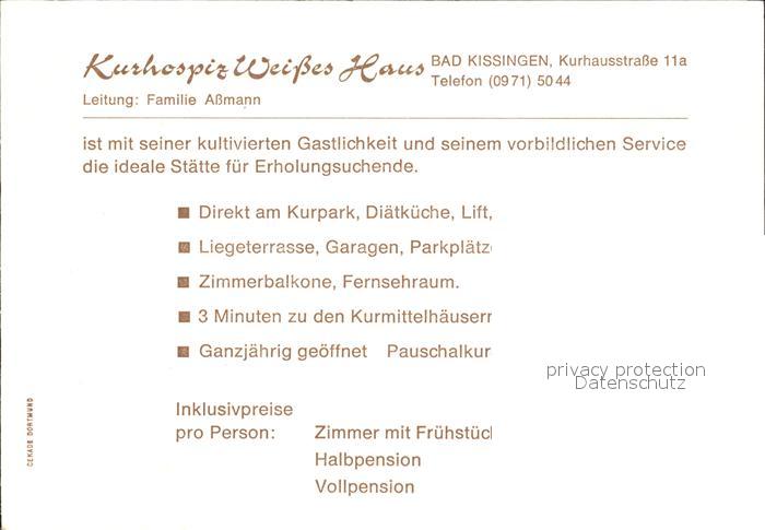 72139526 Bad Kissingen Kurhospiz Weisses Haus Gast und Aufenthaltsraeume postalisch nicht gelaufen Werbekarte (keine Postkarte) Erhaltung siehe scans KatCode: 11110009672114