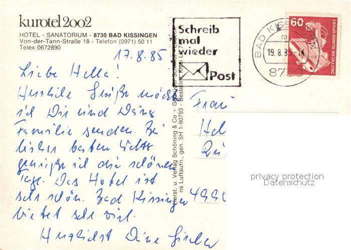 73122131 alte Postkarte Bad Kissingen Kurhotel 2002 postalisch gelaufen Erhaltung siehe scans [NatalD47] KatCode: 11110009672114