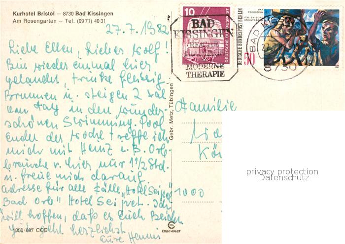 73860310 alte Postkarte Bad Kissingen Kurhotel Bristol postalisch gelaufen Erhaltung siehe scans [WerneD78] KatCode: 11110009672114