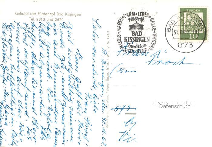 73833327 alte Postkarte Bad Kissingen Kurhotel der Fuerstenhof postalisch gelaufen Fliegeraufnahme Erhaltung siehe scans [FriedD77] KatCode: 11110009672114