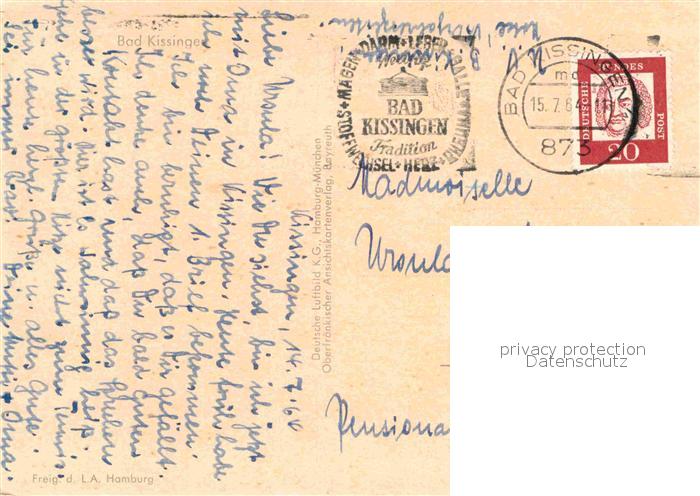 72716965 alte Postkarte Bad Kissingen Kurhotel Park Fliegeraufnahme postalisch gelaufen Erhaltung siehe scans [FriedD77] KatCode: 11110009672114