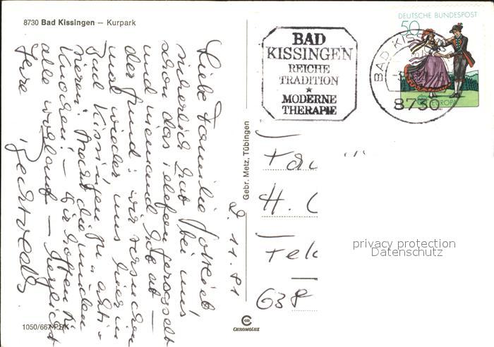72434123 alte Postkarte Bad Kissingen Kurpark postalisch gelaufen Erhaltung siehe scans KatCode: 11110009672114