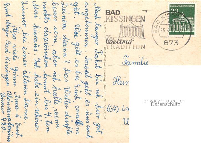 72995579 alte Postkarte Bad Kissingen Kurpark Rosengarten Kurhaus Brunnen Wandelhalle postalisch gelaufen Erhaltung siehe scans [AndreD76] KatCode: 11110009672114