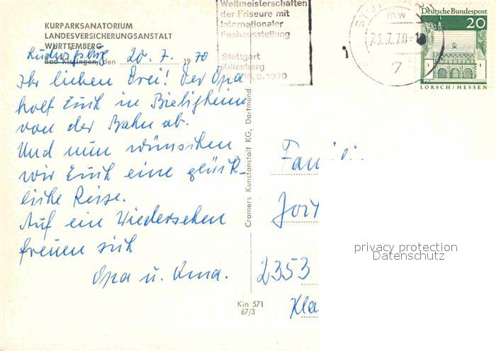 72909015 alte Postkarte Bad Kissingen Kurparksanatorium LVA Wuerttemberg postalisch gelaufen Erhaltung siehe scans [FriedD77] KatCode: 11110009672114