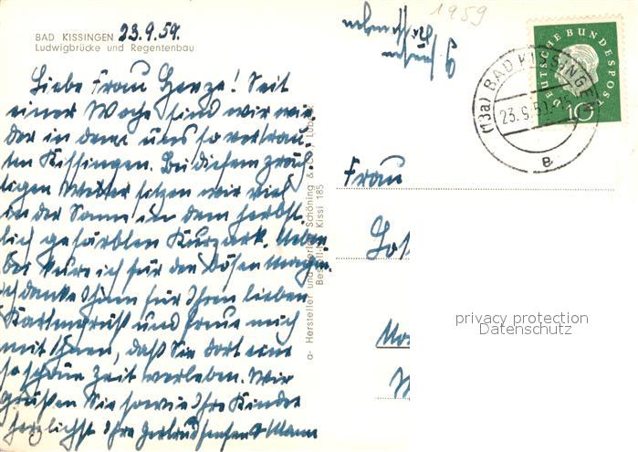 73141970 alte Postkarte Bad Kissingen Ludwigbruecke und Regentenbau postalisch gelaufen Erhaltung siehe scans [FriedD77] KatCode: 11110009672114