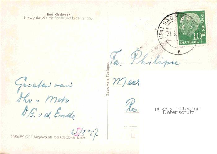 72916605 alte Postkarte Bad Kissingen Ludwigsbruecke Saale Regentenbau postalisch gelaufen Erhaltung siehe scans [NatalD47] KatCode: 11110009672114
