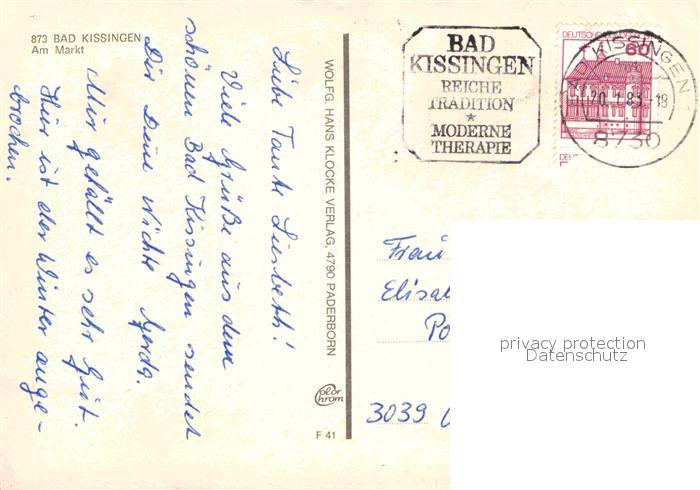 72682705 alte Postkarte Bad Kissingen Markt postalisch gelaufen Erhaltung siehe scans [LiesaD40] KatCode: 11110009672114