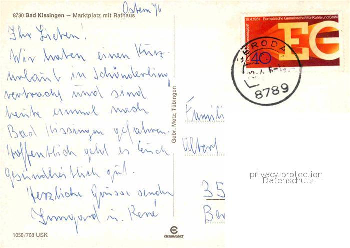 72786423 alte Postkarte Bad Kissingen Marktplatz Rathaus postalisch gelaufen Erhaltung siehe scans [AndreD76] KatCode: 11110009672114
