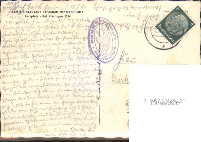 72104869 alte Postkarte Bad Kissingen Ortsblick von Kaffee Jagdhaus Messerschmitt postalisch gelaufen Erhaltung siehe scans KatCode: 11110009672114