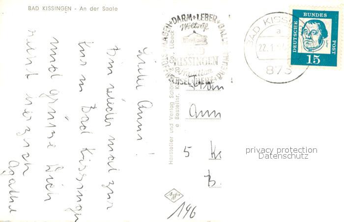 73671763 alte Postkarte Bad Kissingen Partie an der Saale Schwaene Fahrgastschiff postalisch gelaufen Erhaltung siehe scans [FriedD77] KatCode: 11110009672114