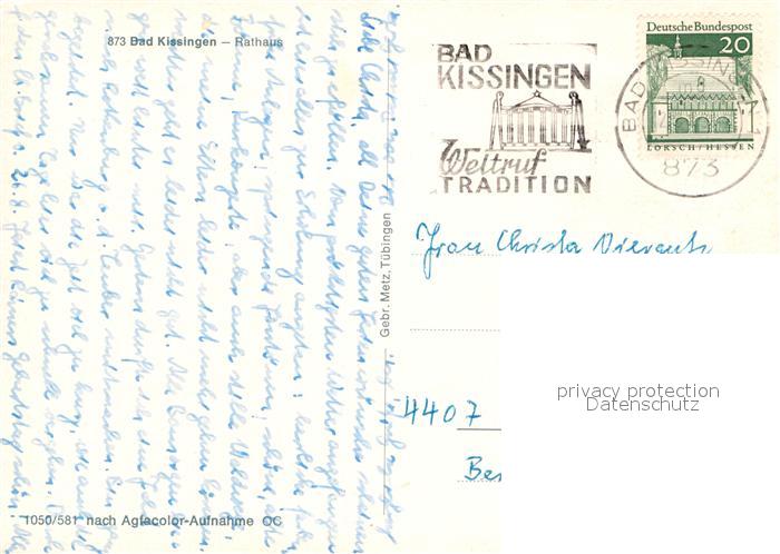 72989571 alte Postkarte Bad Kissingen Rathaus Brunnen postalisch gelaufen Erhaltung siehe scans [WerneD78] KatCode: 11110009672114