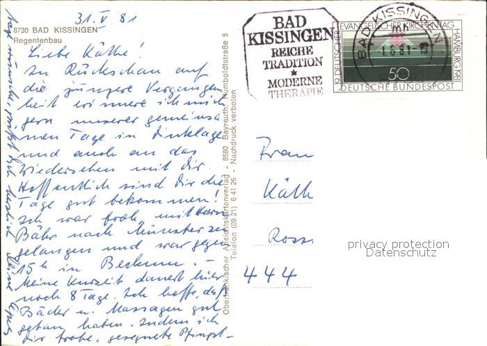 72479426 alte Postkarte Bad Kissingen Regentenbau postalisch gelaufen Erhaltung siehe scans KatCode: 11110009672114