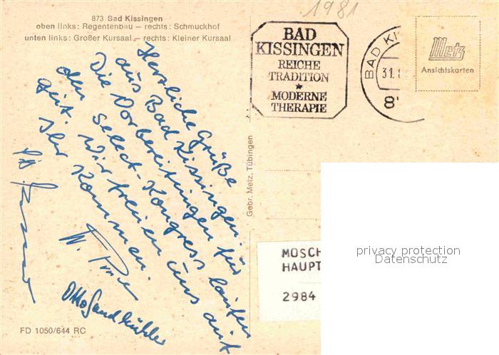 72898070 alte Postkarte Bad Kissingen Regentenbau Schmuckhof Gr Kursaal Kl Kursaal postalisch gelaufen Erhaltung siehe scans [FriedD77] KatCode: 11110009672114