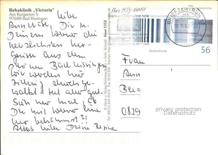 72448519 alte Postkarte Bad Kissingen Rehaklinik Victoria postalisch gelaufen Erhaltung siehe scans KatCode: 11110009672114