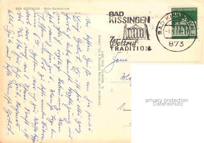 72625802 alte Postkarte Bad Kissingen Rhoen Sanatorium postalisch gelaufen Erhaltung siehe scans [FriedD77] KatCode: 11110009672114