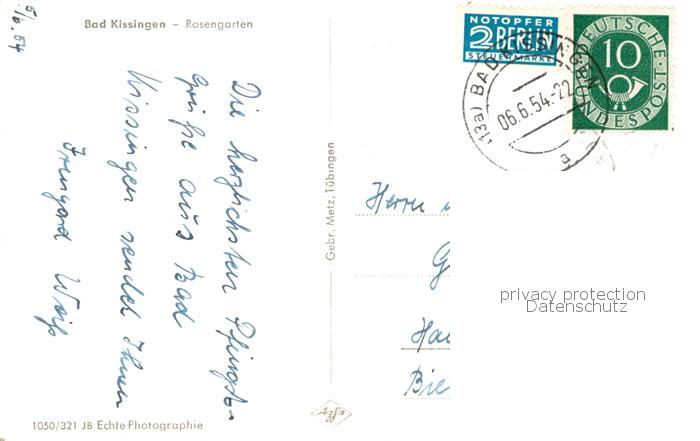 73809828 alte Postkarte Bad Kissingen Rosengarten postalisch gelaufen Erhaltung siehe scans [FriedD77] KatCode: 11110009672114