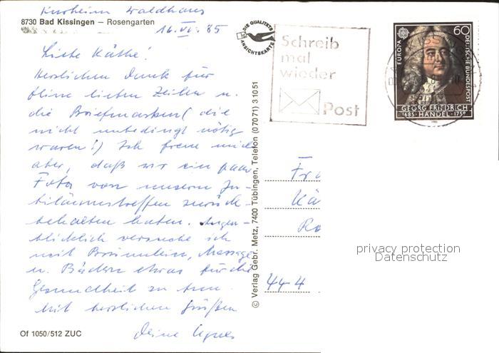 72479427 alte Postkarte Bad Kissingen Rosengarten postalisch gelaufen Erhaltung siehe scans KatCode: 11110009672114