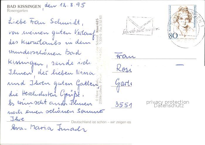 72417116 alte Postkarte Bad Kissingen Rosengarten postalisch gelaufen Erhaltung siehe scans KatCode: 11110009672114