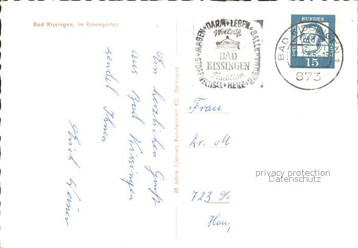 72346998 alte Postkarte Bad Kissingen Rosengarten postalisch gelaufen Erhaltung siehe scans KatCode: 11110009672114