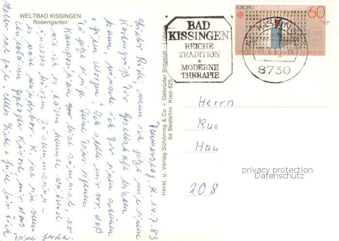 73782994 alte Postkarte Bad Kissingen Rosengarten postalisch gelaufen Erhaltung siehe scans [WerneD78] KatCode: 11110009672114