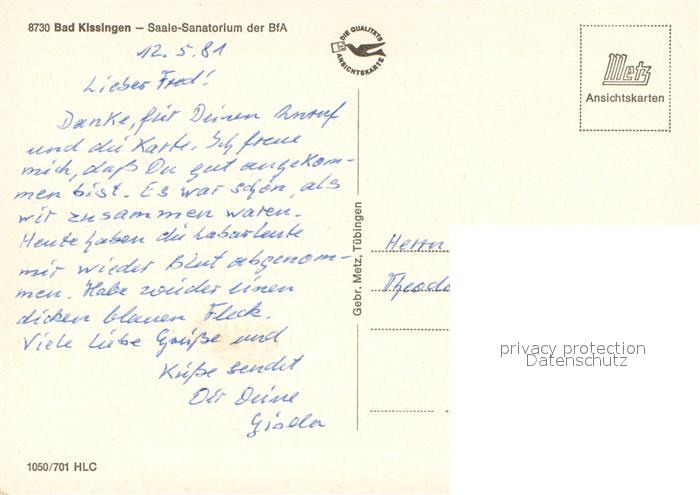 73721994 Bad Kissingen Saale Sanatorium der BfA postalisch nicht gelaufen Erhaltung siehe scans [FriedD77] KatCode: 11110009672114