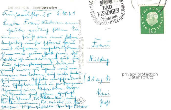73334262 alte Postkarte Bad Kissingen Saale Sanatorium postalisch gelaufen Erhaltung siehe scans [WerneD78] KatCode: 11110009672114