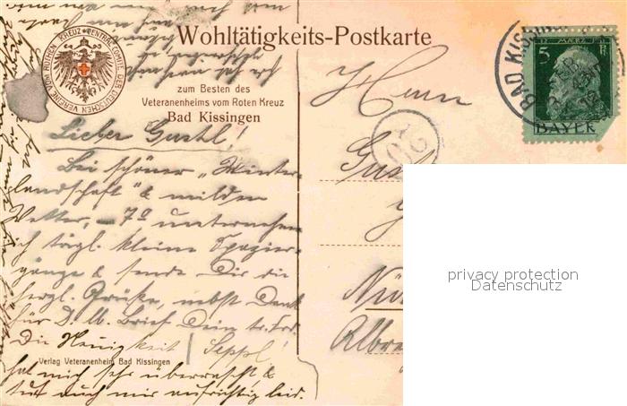 32661546 alte Postkarte Bad Kissingen Salinenbadhaus Bismarckdenkmal postalisch gelaufen Erhaltung siehe scans [LiesaD40] KatCode: 11110009672114