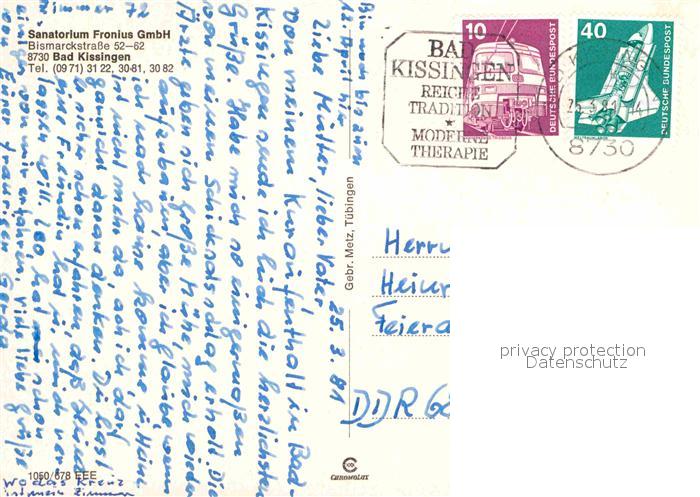 72842508 alte Postkarte Bad Kissingen Sanatorium Fronius GmbH postalisch gelaufen Erhaltung siehe scans [PaolaD17] KatCode: 11110009672114