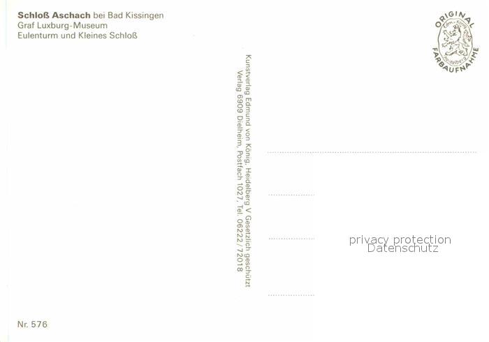72862539 Bad Kissingen Schloss Aschach Graf Luxburg Museum Eulenburg postalisch nicht gelaufen Erhaltung siehe scans [FriedD77] KatCode: 11110009672114