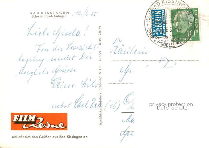 73122234 alte Postkarte Bad Kissingen Schwimmbad Anlagen postalisch gelaufen Erhaltung siehe scans [KathaD81] KatCode: 11110009672114